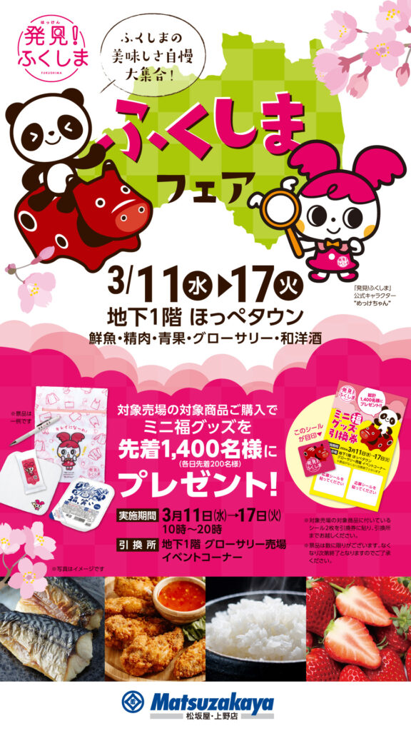 この度、松坂屋上野店 地下1階 ほっぺタウンにて3月11日(水)から17日(火)の7日間、「ふくしまフェア ‘春’」が開催されます。